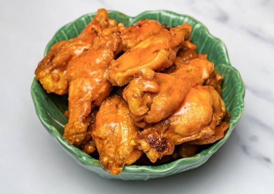 Breaded chicken breast, Buffalo sauce and blue cheese sauce.